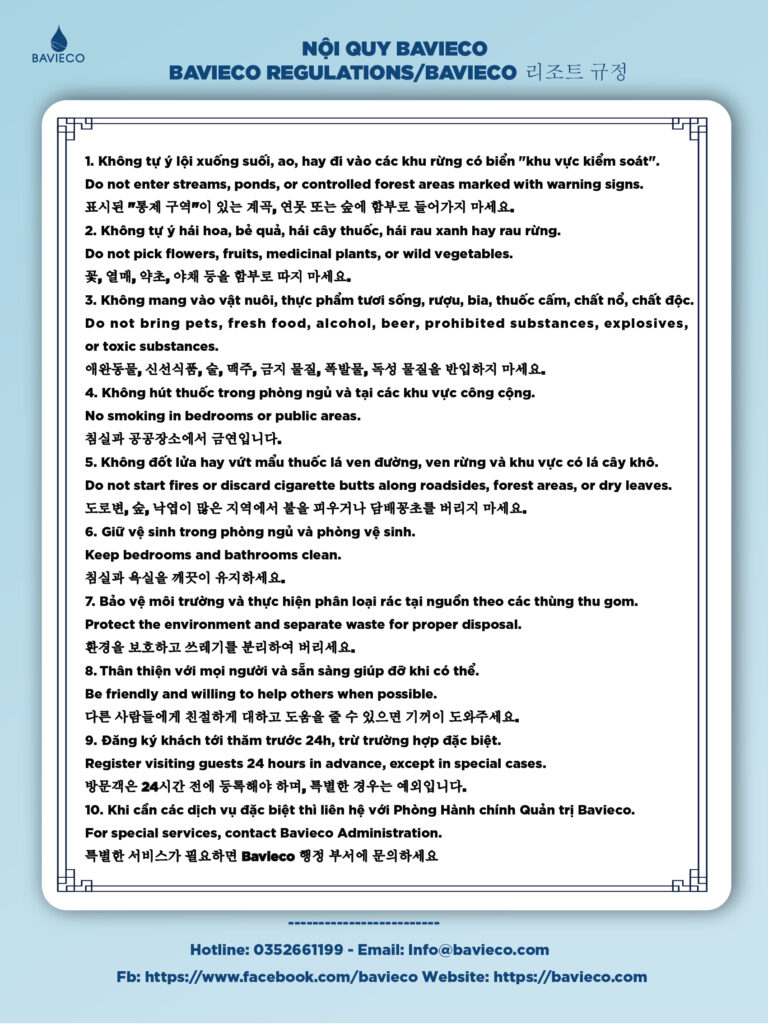THÔNG BÁO VỀ VIỆC THỰC HIỆN NỘI QUY CỦA BAVIECO